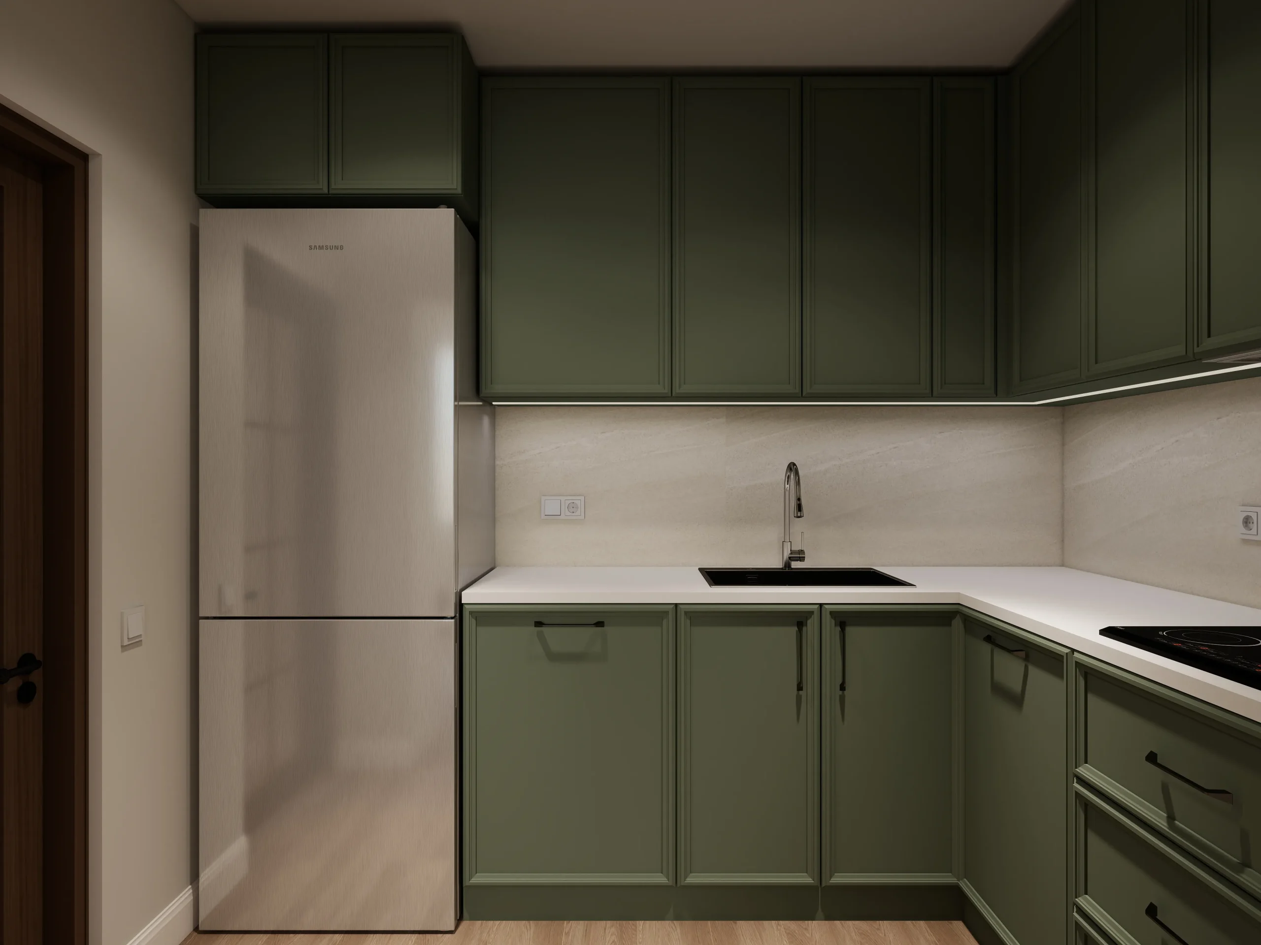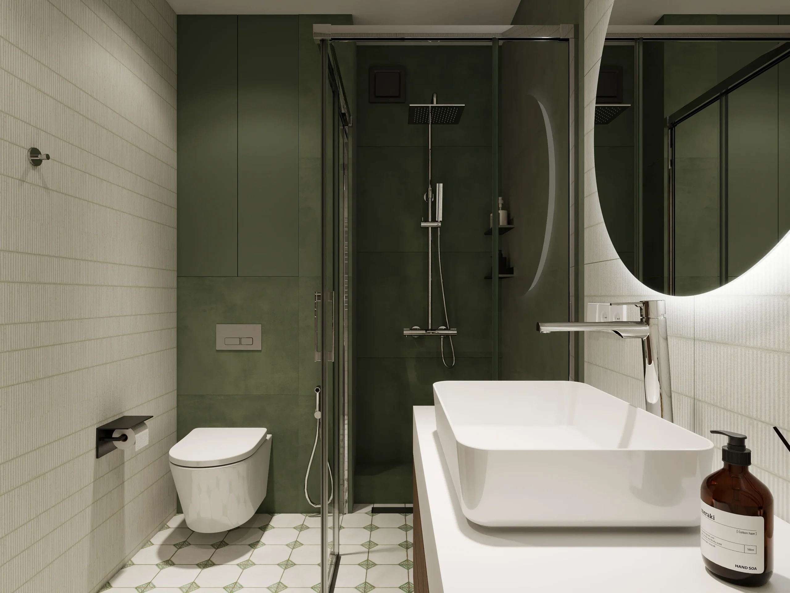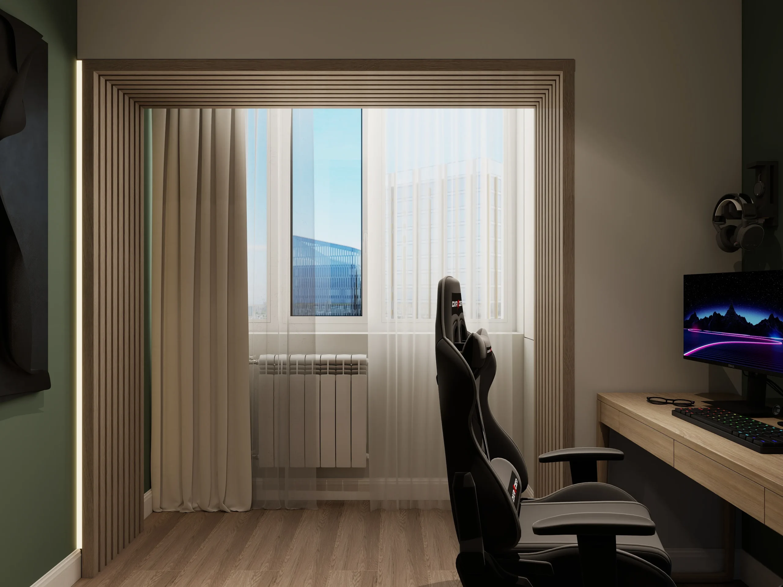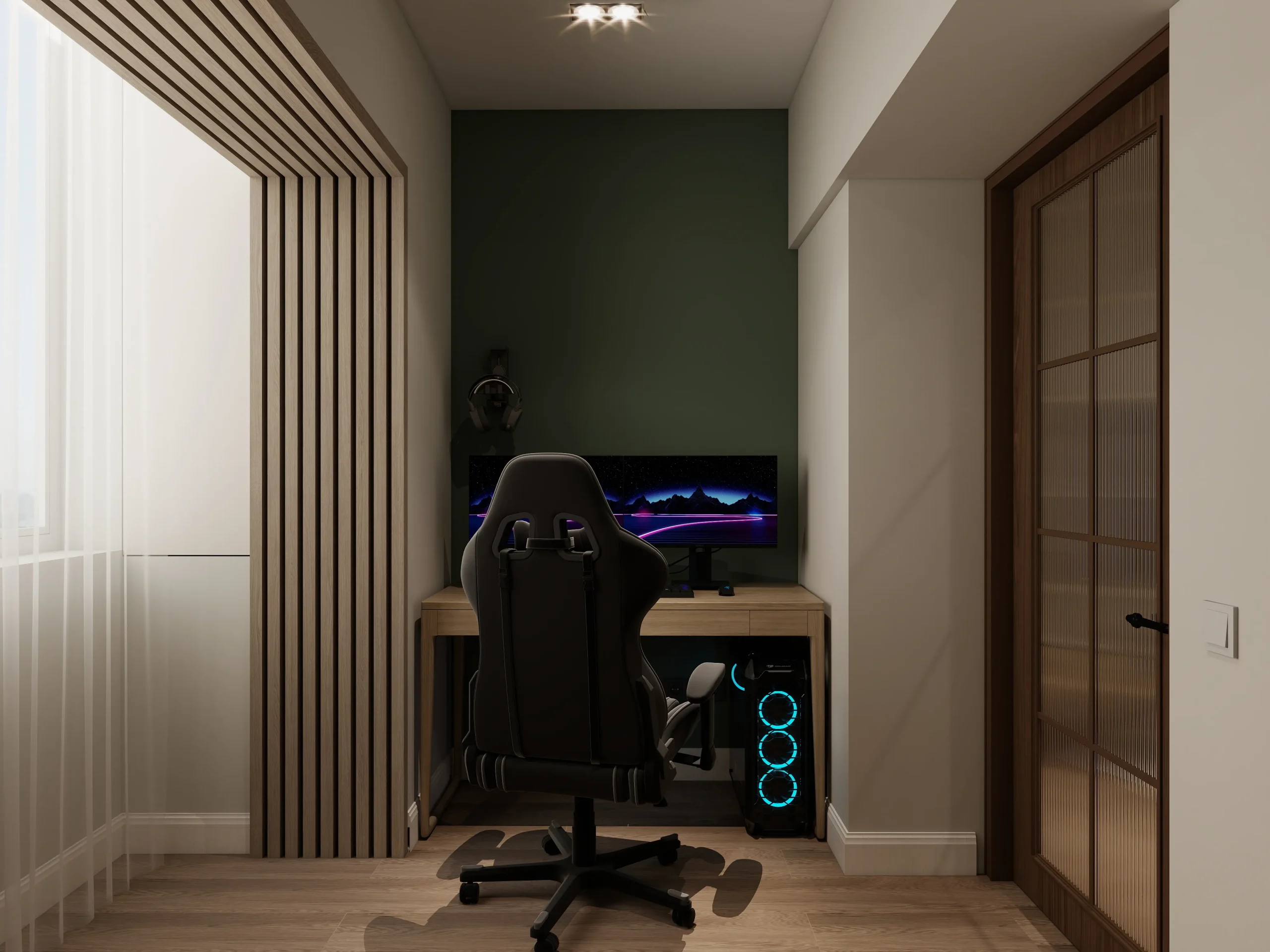 ინტერიერი შესრულებულია თანამედროვე ნატურალისტურ სტილში, სადაც დომინირებს თბილი ხის ფაქტურები და რბილი, მიწისფერი ტონები. სივრცე მშვიდი და ჰარმონიულია, აქცენტი გაკეთებულია ბუნებრივ მასალებსა და კომფორტულ ფორმებზე. დიზაინი აერთიანებს სიმყუდროვესა და თანამედროვე ესთეტიკას, რაც ქმნის მყუდრო, მაგრამ დახვეწილ საცხოვრებელ გარემოს.