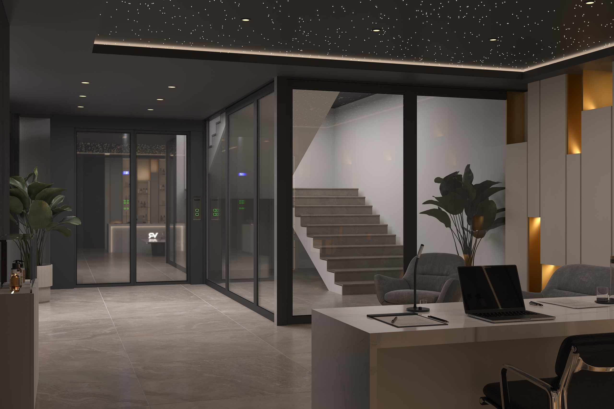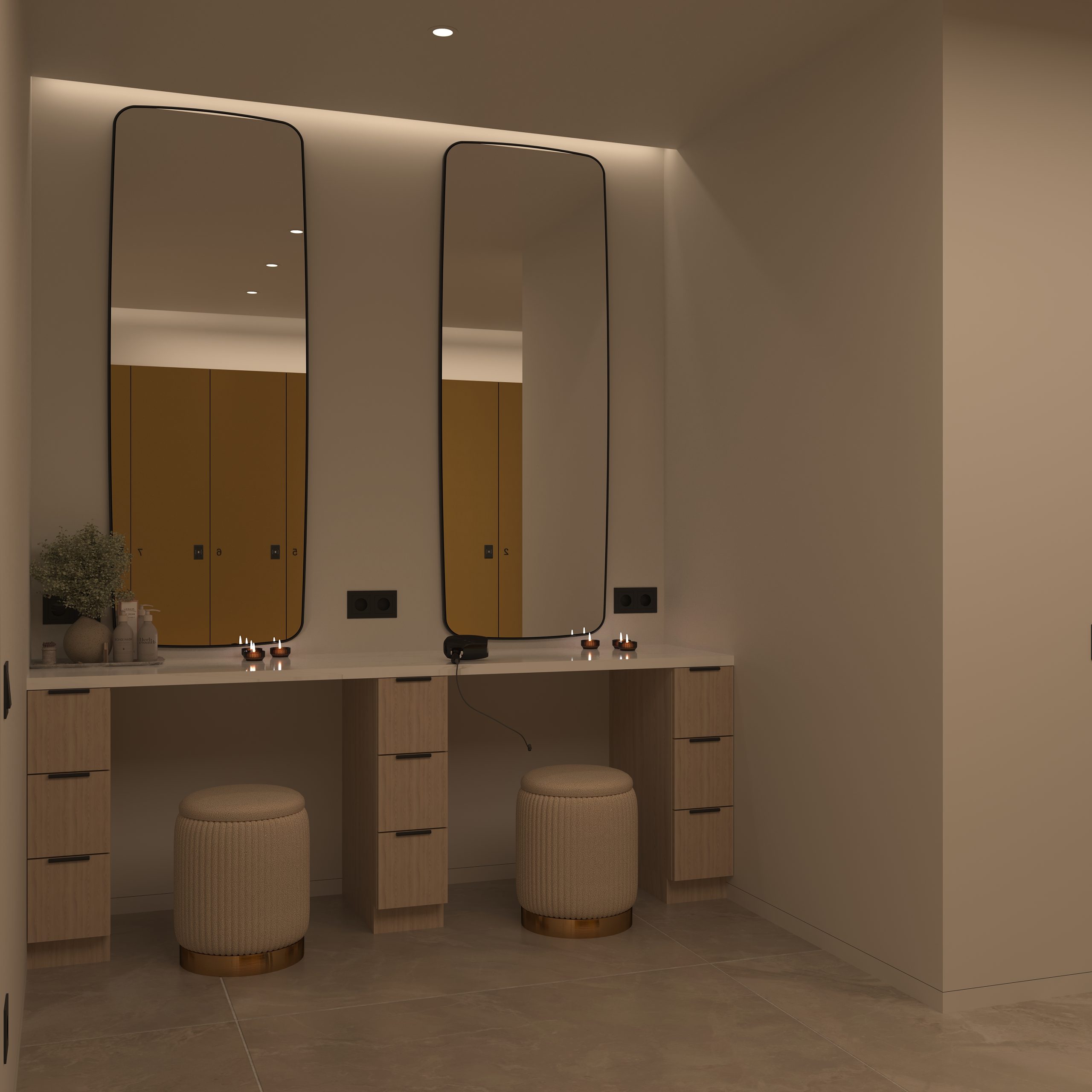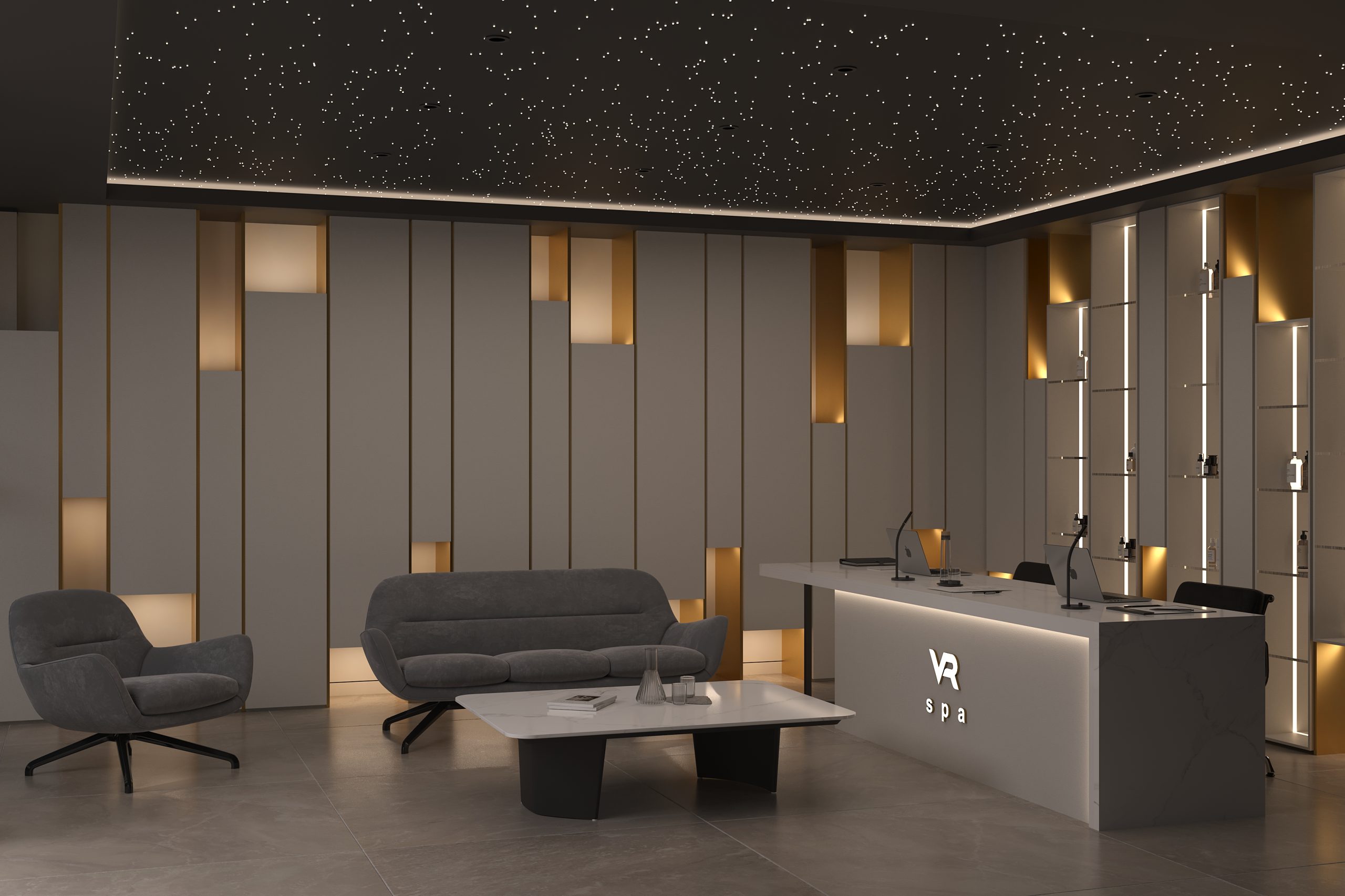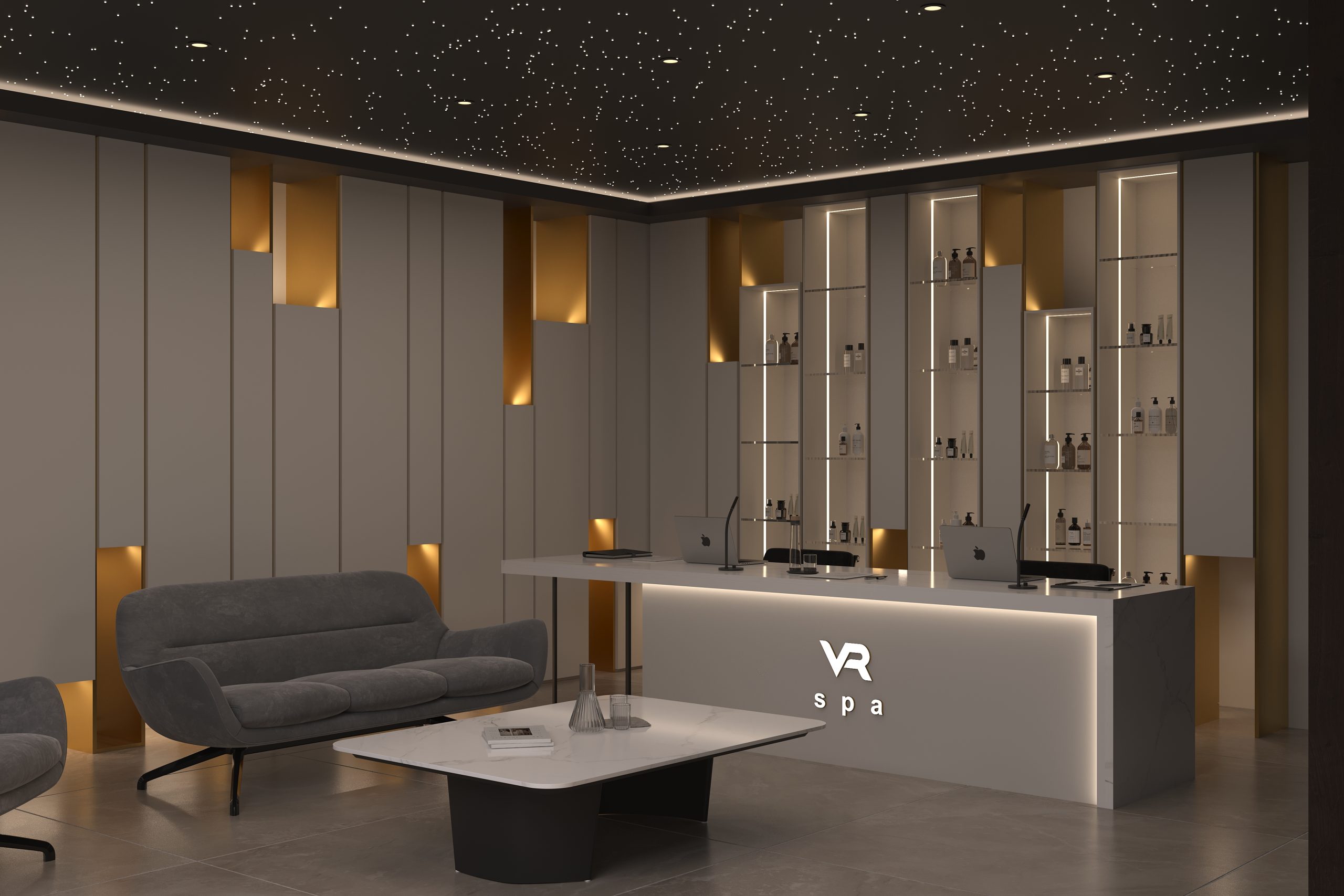 სივრცის არქიტექტურა გამოკვეთილია განათების ხაზებითა და ფარული ლედური განათებით, რომელიც სიღრმის ეფექტს და ზონებს შორის რბილ გადასვლებს ქმნის. მოლოდინის ზონები, პროცედურული კაბინეტები და რელაქს-სივრცეები გაერთიანებულია ერთიანი კონცეფციით — ზედმეტი დეტალების არარსებობა სტუმარს საშუალებას აძლევს კონცენტრირდეს შეგრძნებებსა და დასვენებაზე.